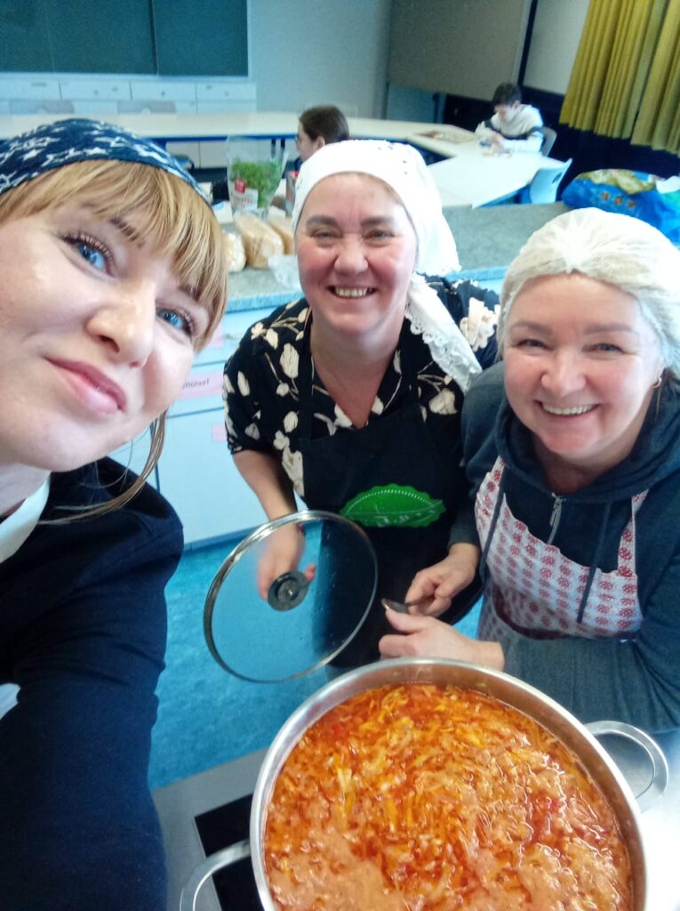 Das köstliche ukrainische Essen, das mit Liebe und Herzlichkeit von Ukrainerinnen gekocht war, hat allen hervorragend geschmeckt. Es gab eine große Auswahl von Speisen. Besonders beliebt waren die Pirogen mit Kartoffeln und Uzwar- ein Getränk aus getrockneten Äpfeln, Birnen und Aprikosen.